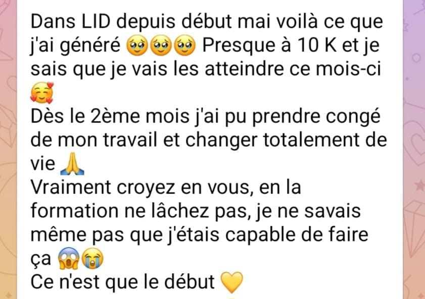 En achetant la formation, tu obtiens la licence MRR (Master Resell Rights), qui te donne le droit de revendre LID à l’infini et de garder 100 % des bénéfices.